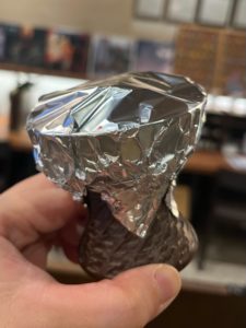 コスモショットが入荷した日、私はお休みいただいておりました。いつもの休みどおり一週間頑張った自分へのご褒美、猫カフェでまったりしていたところ店長からこんなLINEが届いたわけです。